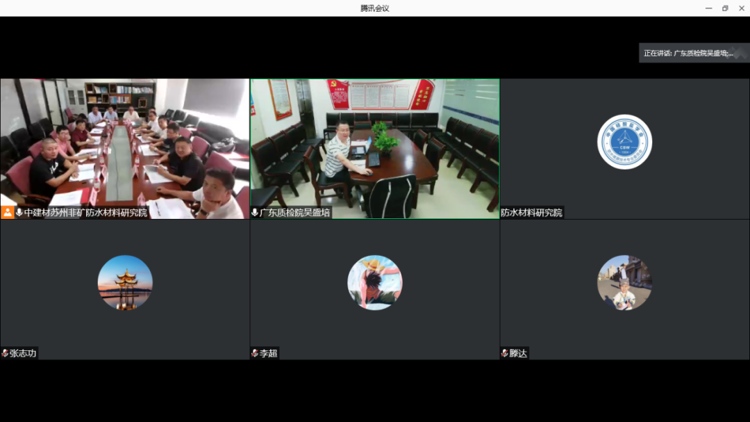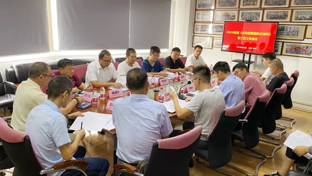 主編單位蘇州中材非金屬礦工業(yè)設(shè)計研究院有限公司、廣東合勝實業(yè)股份有限公司,參會單位江蘇凱倫建材股份有限公司、菏澤市魯班新型建材有限公司、重慶斯格爾實業(yè)有限公司、江西萬合防水科技有限公司、四川省威盾匠心建設(shè)有限公司、常州市盛宇防水材料科技有限公司、安徽東方佳信建材科技有限公司、江蘇宏源中孚防水材料有限公司,共10家單位15名代表出席線下會議;廣東產(chǎn)品質(zhì)量監(jiān)督檢驗研究院、宏源防水科技集團有限公司、三棵樹涂料股份有限公司、遼寧九鼎宏泰防水科技有限公司,共4家單位4名代表參與線上視頻會議。